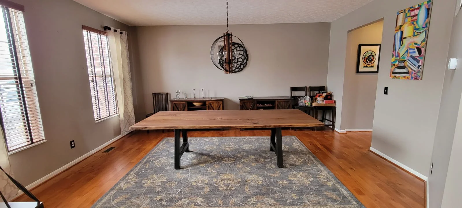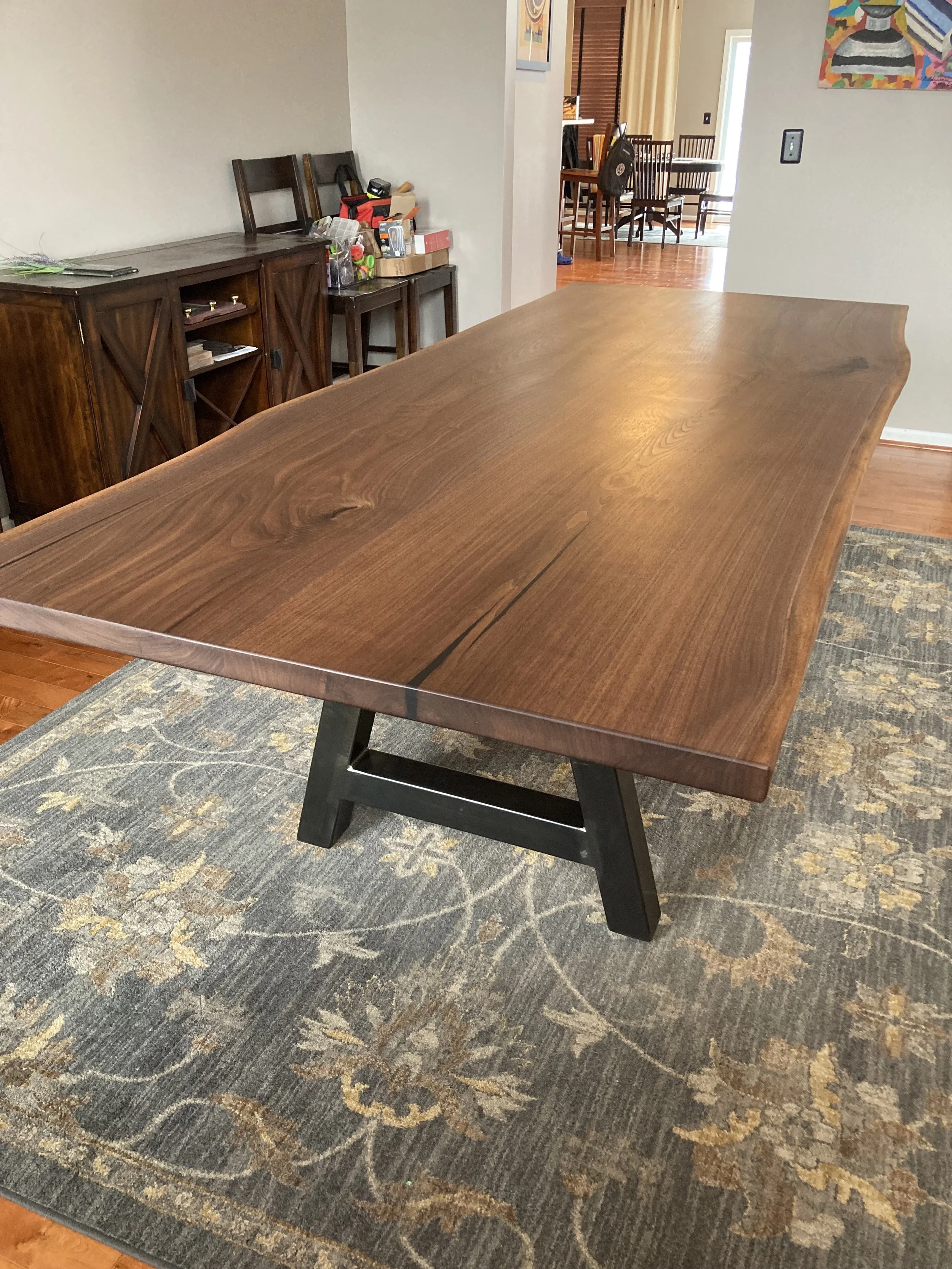 Dickson Walnut Dinner Table Massive 10’ x 48” walnut top on the heaviest duty A-frame metal legs available. View fullsize View fullsize View fullsize View fullsize View fullsize