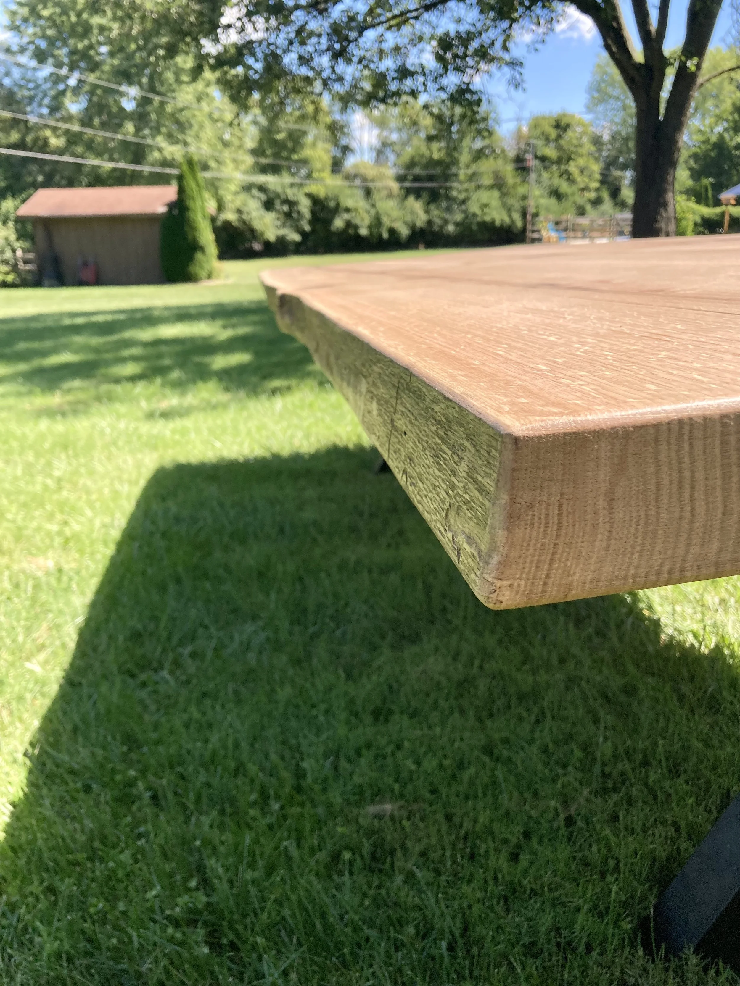 This oak tree was cut down seven years ago from the site of the first house Chris ever built. Needless to say, it is special. And seven years later, that special tree turned into this special table for their own house that he also built. The covered patio went up days before in preparation for this spectacular masterpiece.