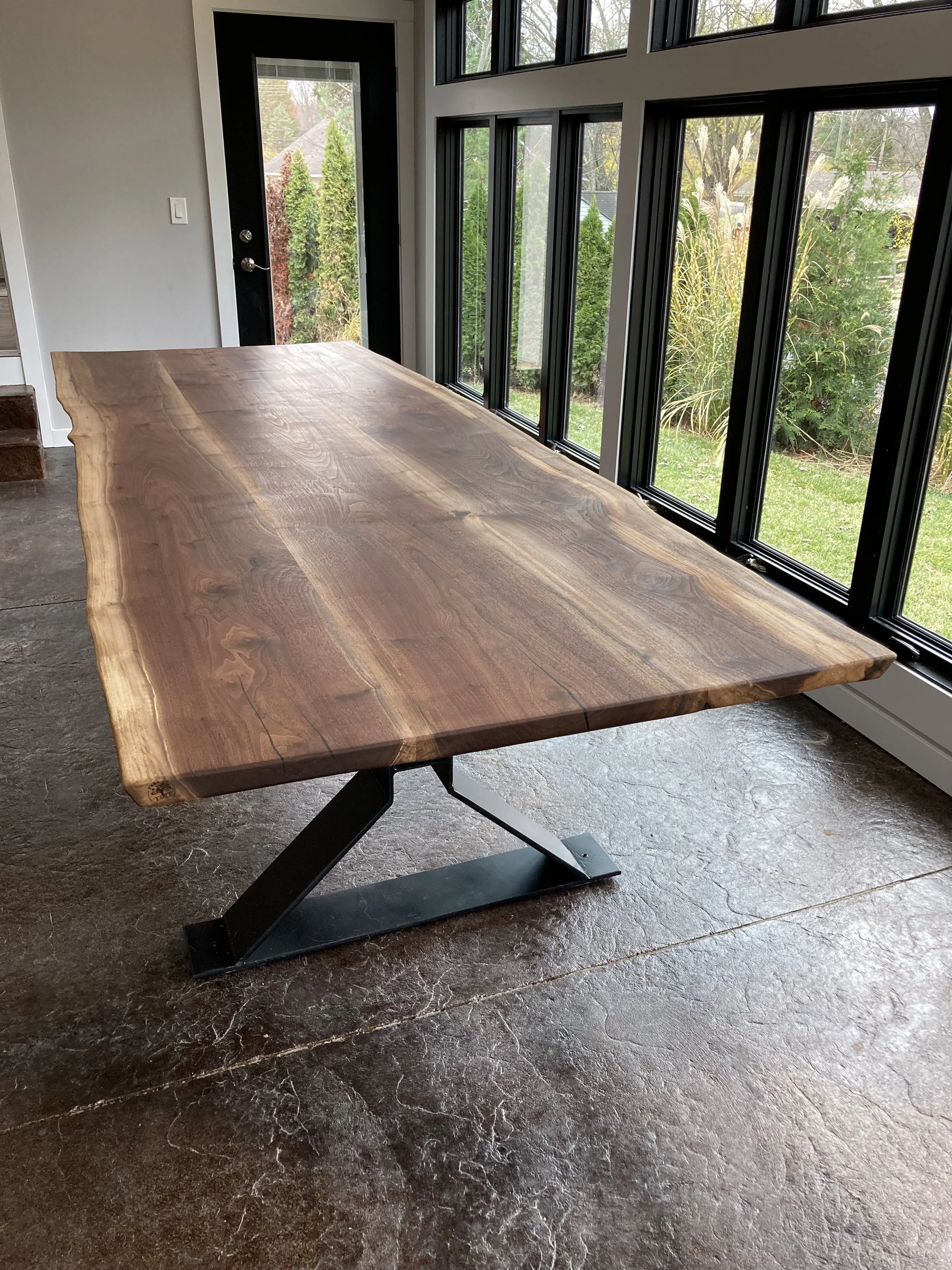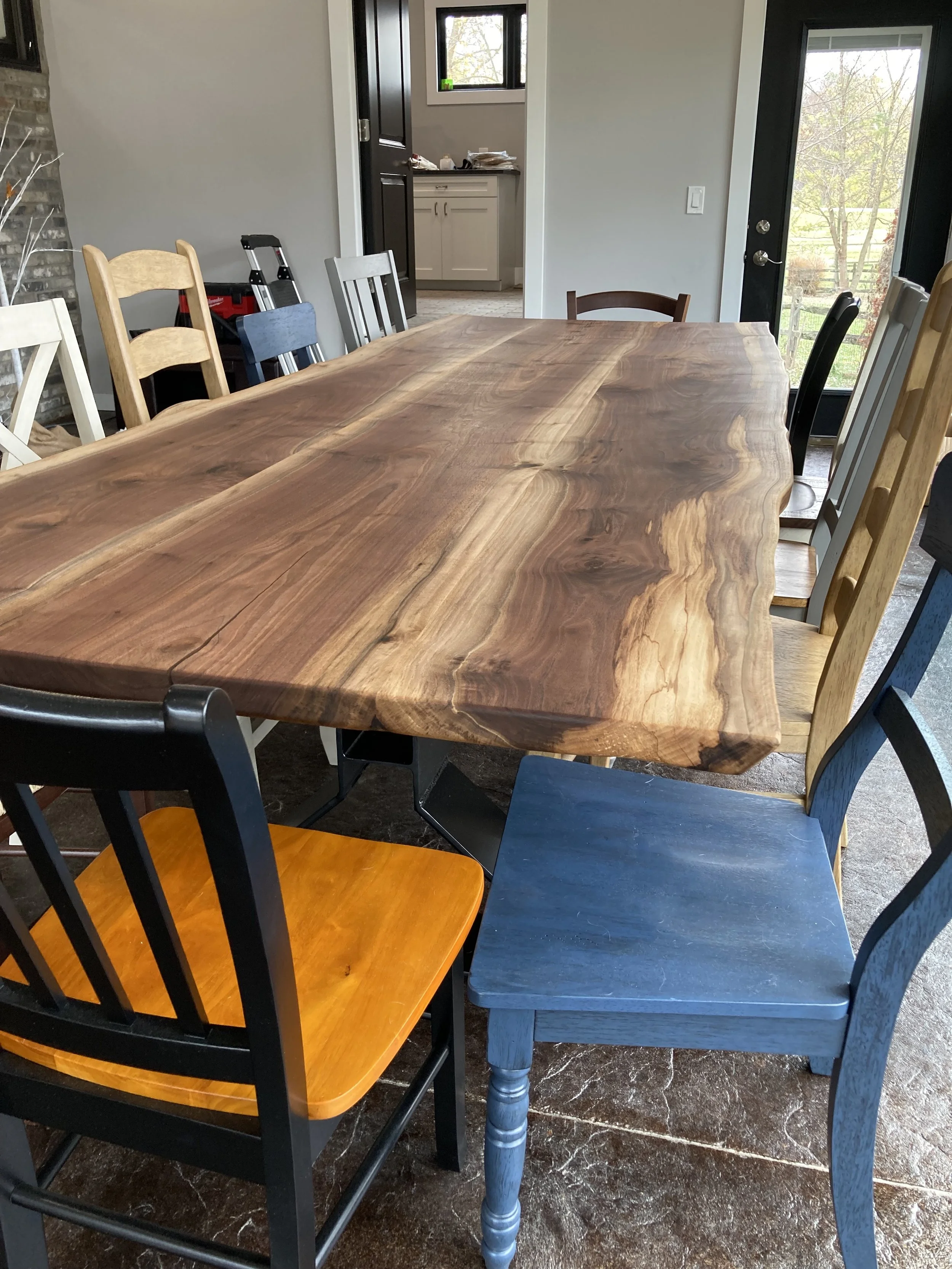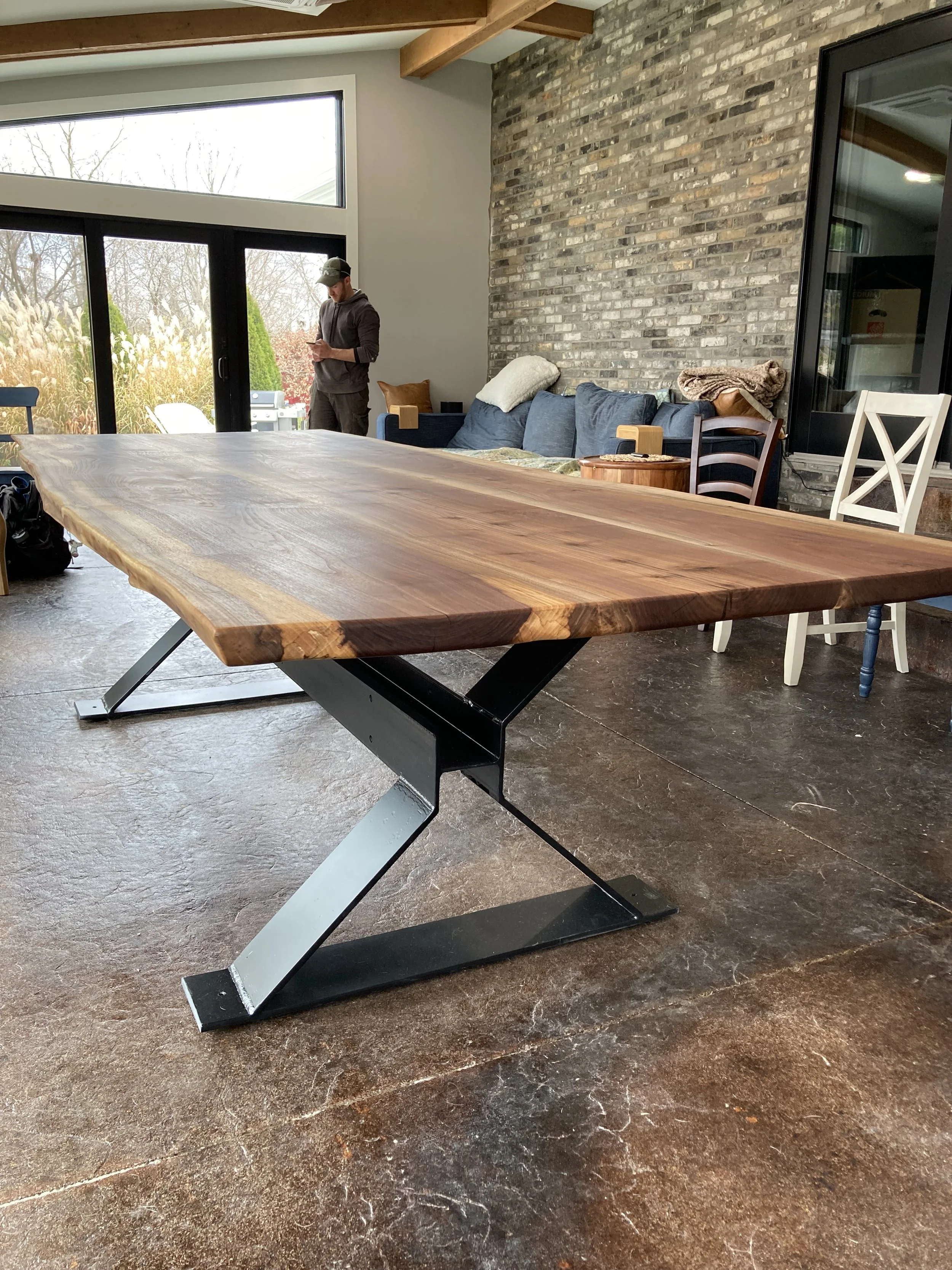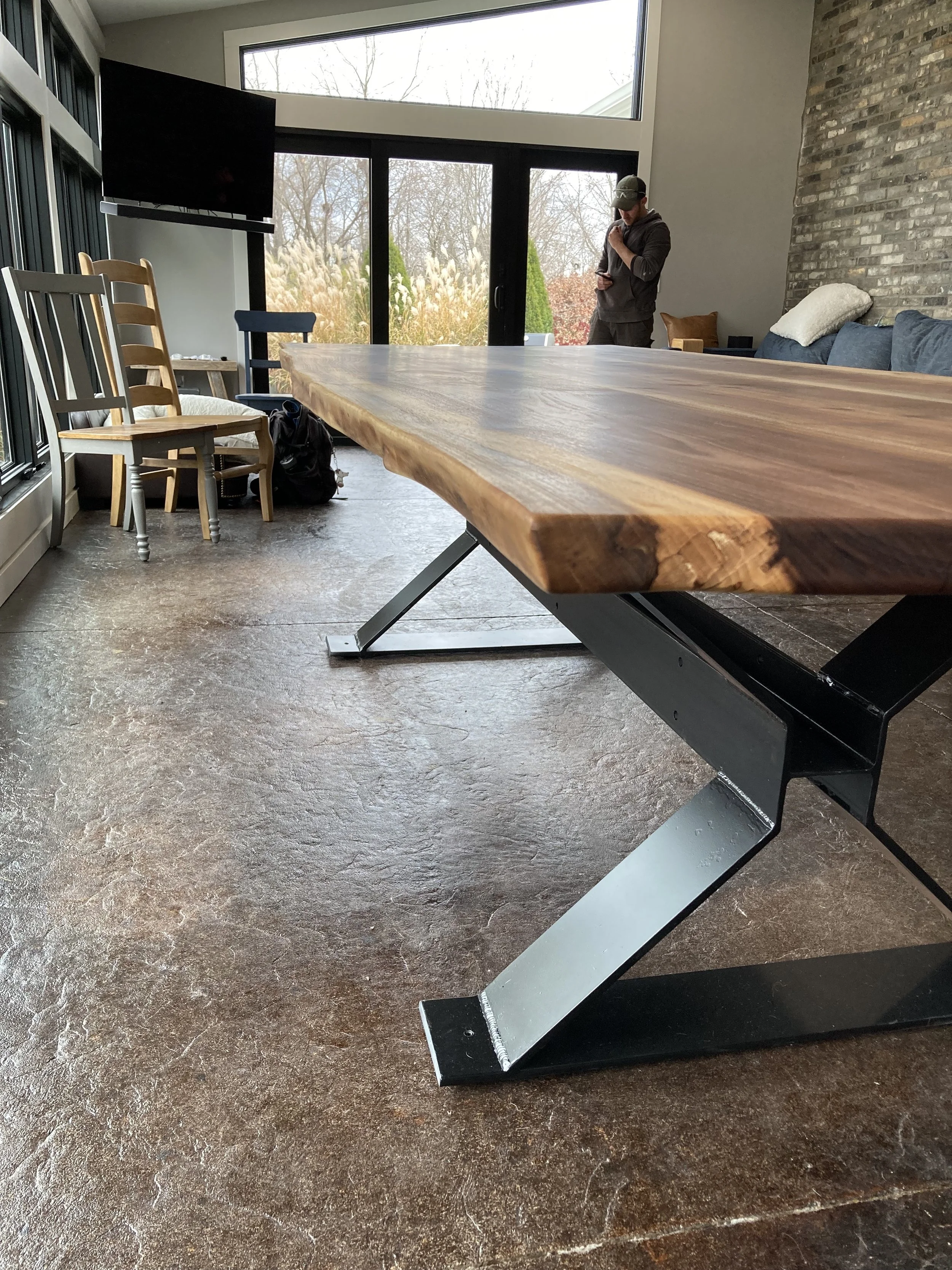 Madden 10’ Dining TableThe Maddens were looking for a 10’ dining table for their addition, in time for Thanksgiving. The client owns a metal shop and decided to build the base himself! View fullsize View fullsize View fullsize View fullsize View fullsize
